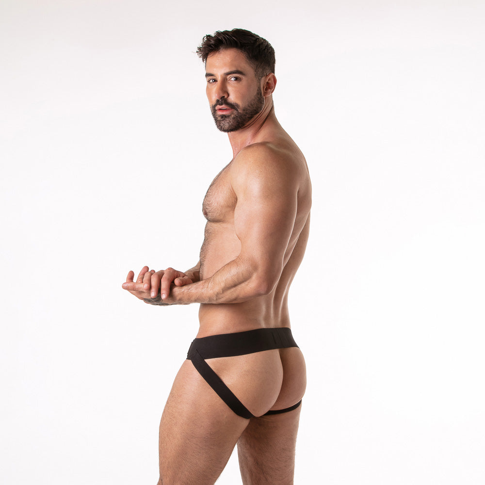 Diseñado para hombres que viven la estética fetish con naturalidad, este jockstrap aporta una presencia directa y segura. Su silueta abierta realza el cuerpo masculino sin artificios, conectando con una masculinidad consciente que se mueve con soltura dentro de la escena queer contemporánea.